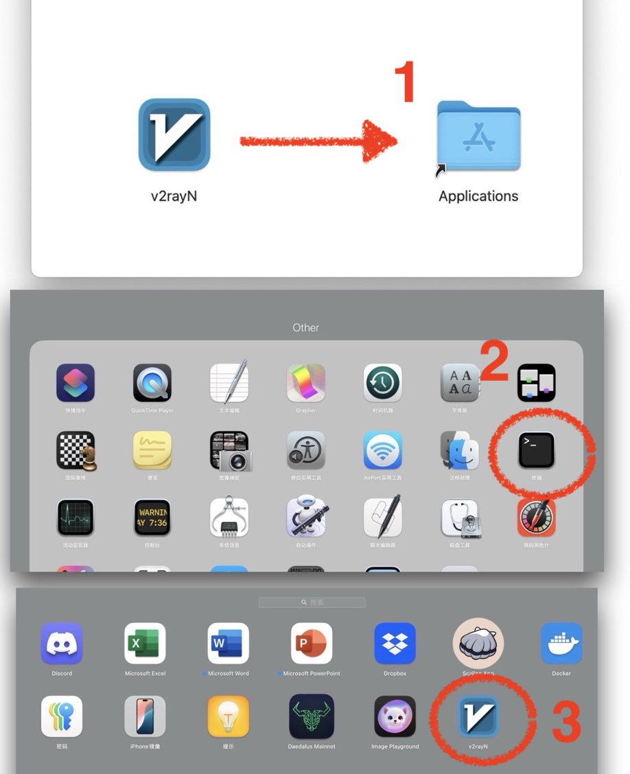 1. 下载安装包打开后, 把v2ray应用程序拖拽到Applications文件夹