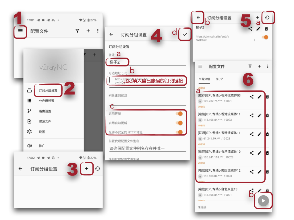 下载并安装应用, 添加订阅并更新,获取所有线路列表 下载应用 备用下载